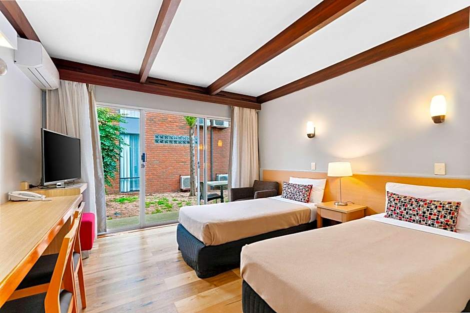 This standard room includes either a queen-sized bed or 2 single-sized beds. It also includes a flat-screen TV with cable channels and a well-appointed bathroom with a shower and access to on-site laundry facilities.